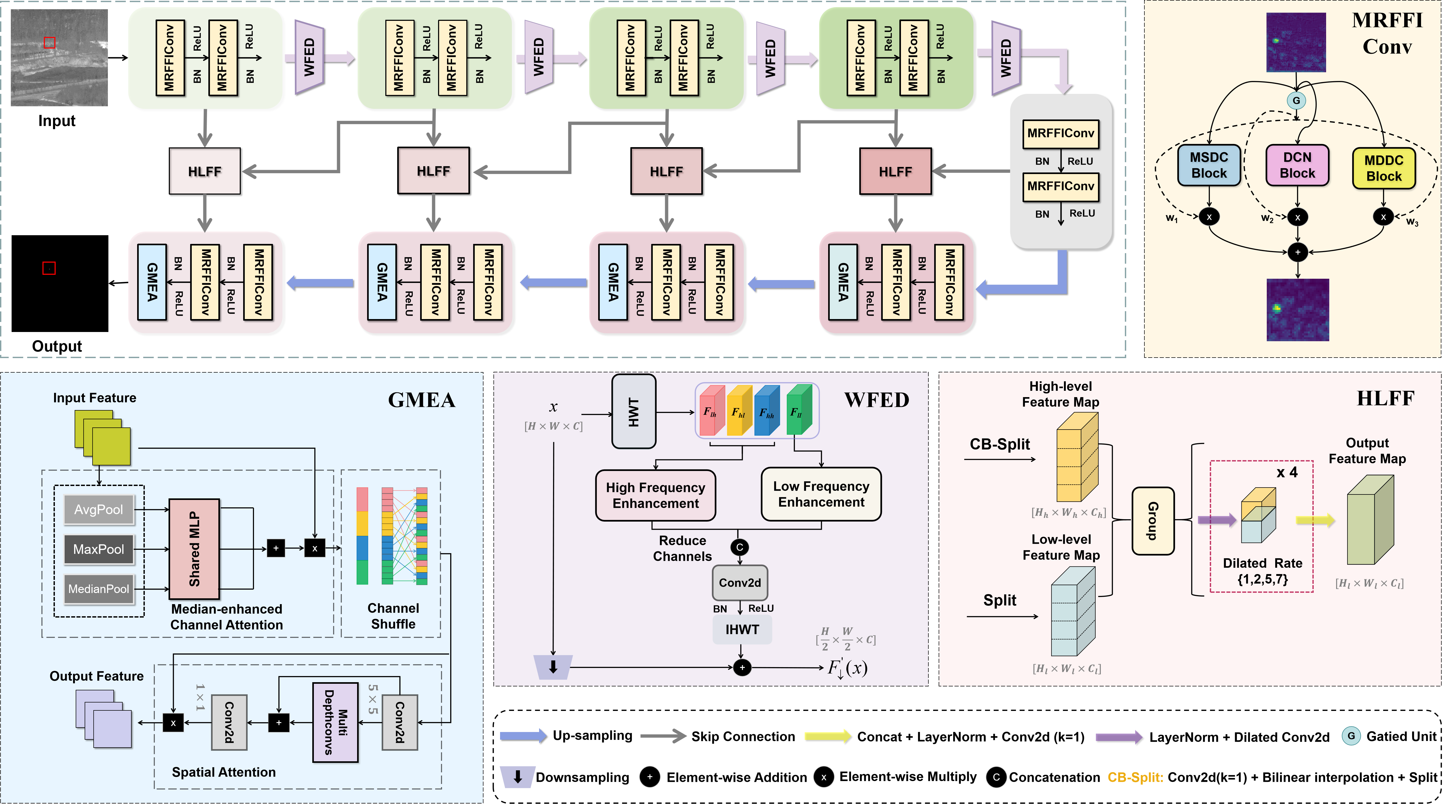 2) 提出了小波频域增强下采样模块(WFED),在抑制噪声和背景信息的同时增强边缘与细节特征,有效缓解分层网络中的特征丢失问题。