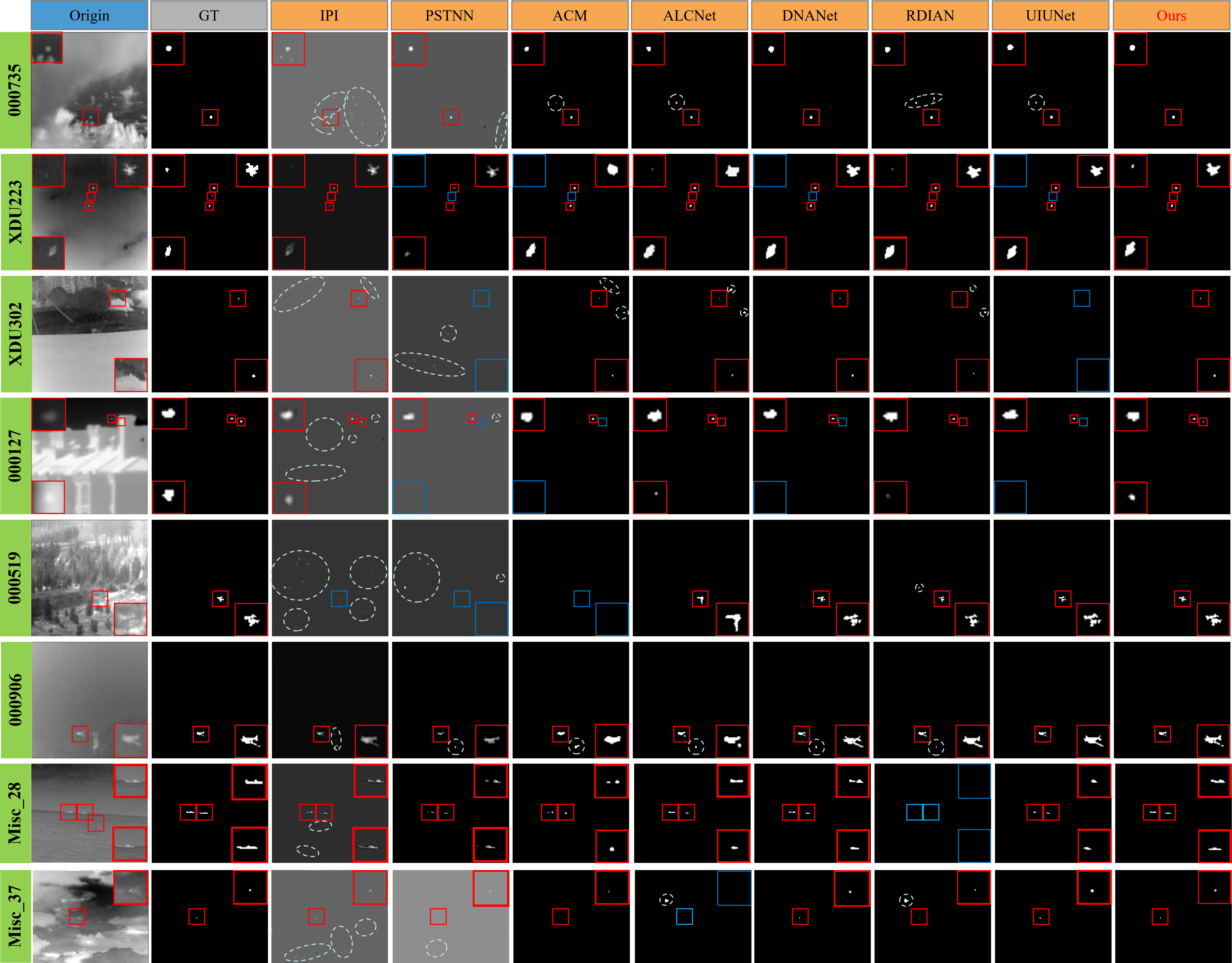 4) 所提出的网络在多个数据集上实现了最先进的检测性能。可视化结果进一步验证了该方法在多种挑战性场景下具有优异的检测精度与鲁棒性。